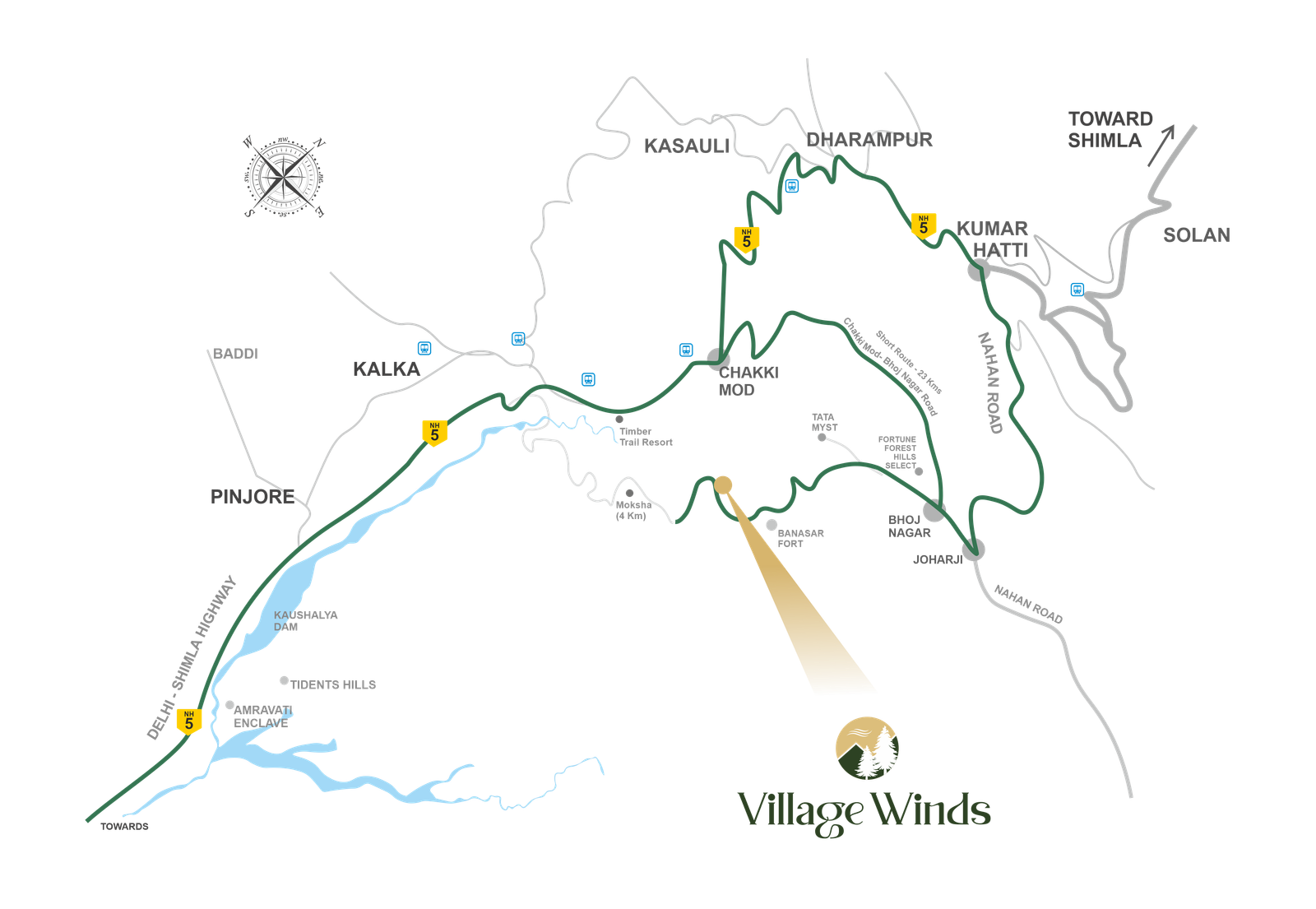 Located near Banasar Fort and other renowned hotels and residential developments, Village Winds offers easy access to the best destinations in Himachal Pradesh.