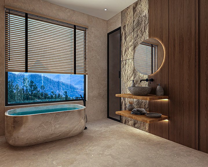 Embrace the serene beauty of contemporary cottages, surrounded by the natural grandeur of hills.